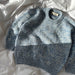 Melange Sweater Junior is worked from the top down. First, the back yoke is worked back and forth in stockinette stitch. Then, each shoulder is worked separately and joined to form the front yoke. Front and back yoke are then joined to form the body, which is worked in the round on a circular needle. Stitches for the sleeves are picked up and knitted along the armholes, worked in the round on double-pointed needles or on a circular needle using the Magic Loop technique. Finally, the rib edge at the neckline is worked from picked-up stitches and folded double. Melange Sweater Junior is worked in two strands of yarn in contrasting colors to achieve the marled or “mélange” color.
