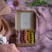 Presented in a cardboard box printed with a pad using certified organic ink.